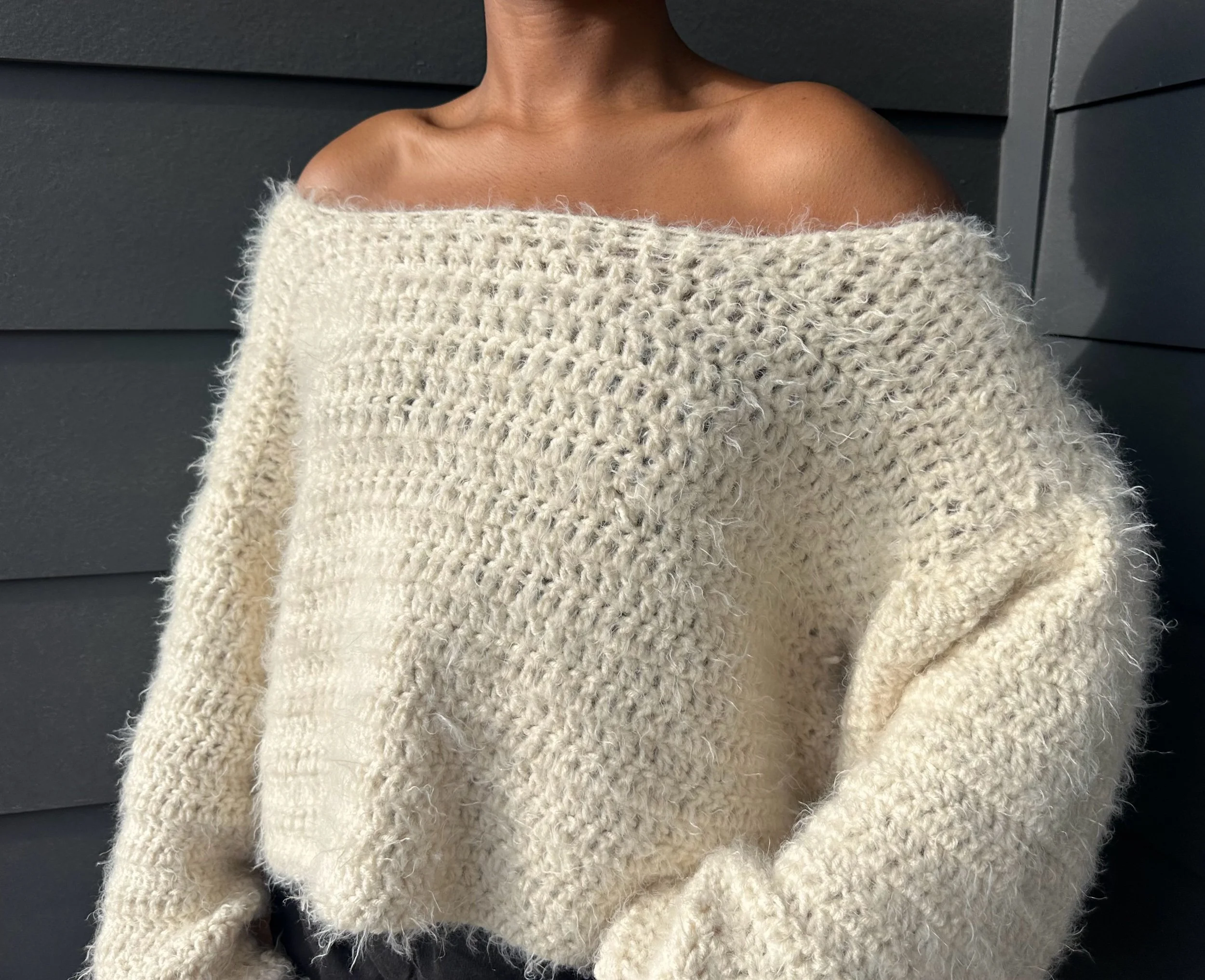 A handmade, warm chunky cardigan with a large hood. Made with brown wool yarn. This sweater will keep you warm with its three ply yarn and heavy material.